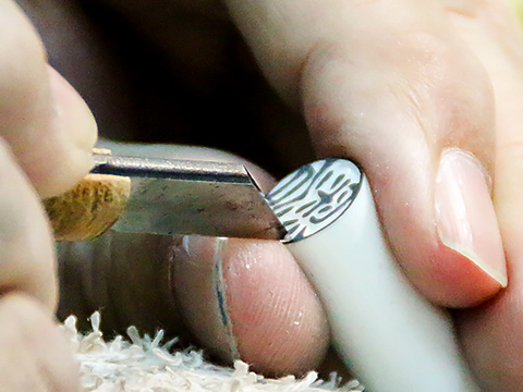 明治22年の創業以来、店頭でのはんこ手仕上げ彫刻を実演し続けています。
